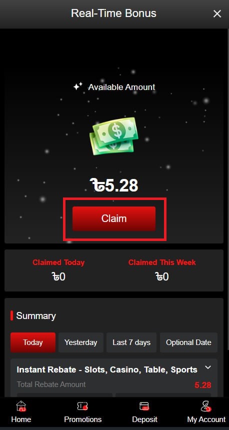 3. Under Available Amount, click Claim to redeem your Rebate or Rescue bonus.